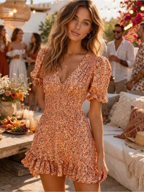 Flattering fully smocked bodice + soft puff sleeves + ruffle hem = that viral “effortless European summer / coastal getaway” vibe.