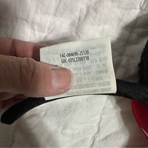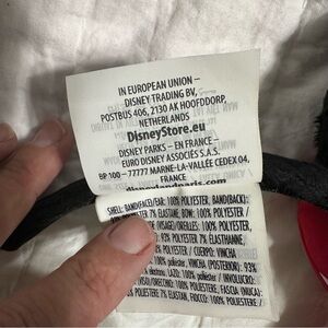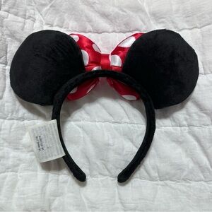 Classic Minnie Mouse ear headband by Disney. Plush black ears with a red bow and white polka dots. Fun accessory for Disney fans. Lightweight and easy to wear.