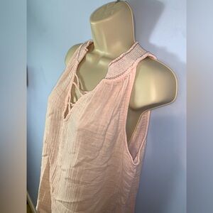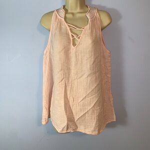 Michael stars gauzy cotton powder pink “lace up” tank collar stitching medium