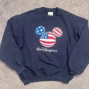 Vintage Walt Disney World Women's XL Crew Neck Sweatshirt American Flag Mickey. No issues.