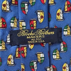 Brooks Brothers Silk Sailboat Tie Blue, Yellow & Red Made in USA