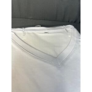 The classic v-neck design offers a flattering look, and the crisp white color makes it incredibly versatile to pair with your favorite jeans, shorts, or skirts.