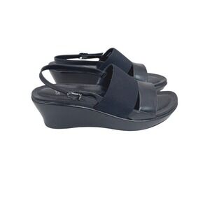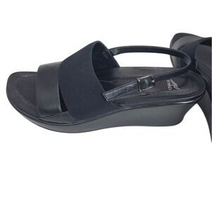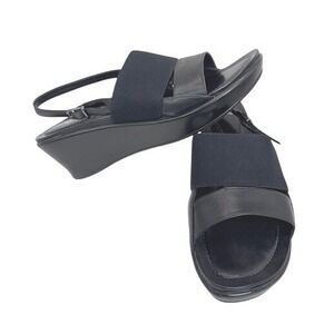 Dansko Black Leather Elastic Slingback Wedge Sandals Womens 39 resort travel