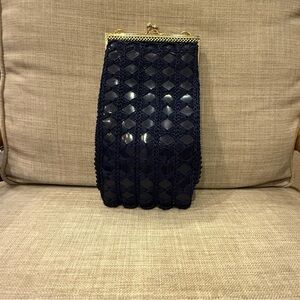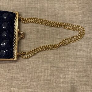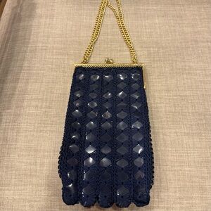 Vintage Crochet Navy Blue Gold Chain Kiss Lock Bag by Solar LTD Italy