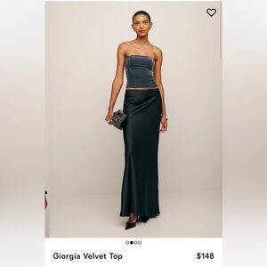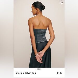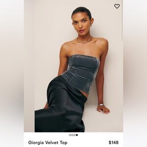 Giorgia Velvet Top from Reformation, a fitted strapless top with seam detailing and a smocked back.