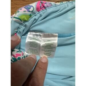 The Lilly Pulitzer LUXLETIC Bali Blue Sway This Way Skirt/Skort in size 4 is a stylish and fun piece perfect for a beachy or performance-themed outfit. Made from a blend of spandex and poly, this skirt features a vibrant blue floral pattern, a pull-on closure, and a short length. The skort style combines the functionality of a skirt with the convenience of a built-in pant, making it a versatile and comfortable choice for any beach or performance occasion. Perfect for a woman looking to make a statement with her clothing while staying comfortable and stylish.