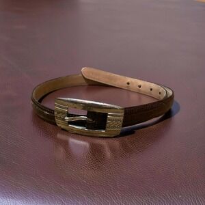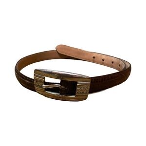 Vintage Italian Calfskin Brown Leather Belt Silver Buckle Made in USA 9873