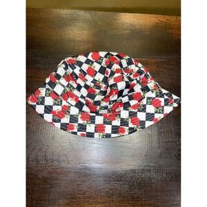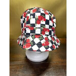 Spencers Checkered Rose Bucket Hat Trendy Fashion Black White Red Floral