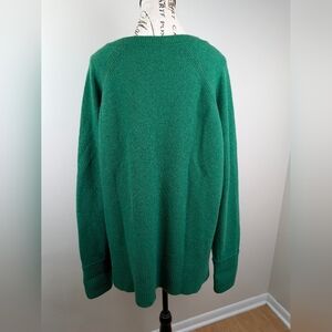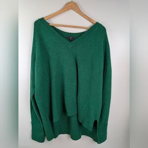 J. Crew Women's Emerald Green High Low V-Neck Relaxed Merino Blend Sweater XXL