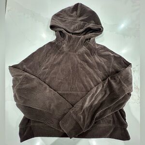 Classic Lululemon oversized scuba hoodie in light heather gray. Soft, cozy fabric with front pockets and a hood. Simple, versatile staple for everyday wear.