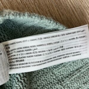90% cotton sweater. I’ve only worn this a couple of times. It’s good quality and comfortable, I just don’t love the color on me!