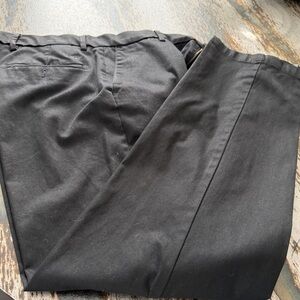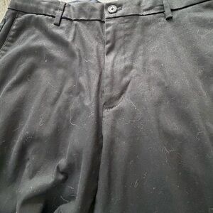 Smart black Dockers chinos. Straight leg with clean front creases. Comfortable waistband and belt loops. Versatile for work or casual wear.