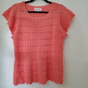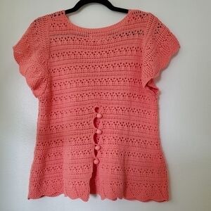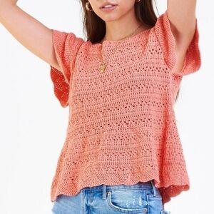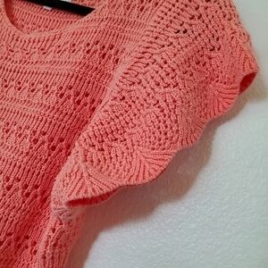 This size L Dear John Coral Cotton Knit Raegan Crochet Detail Sweater Koi Fusion is in great used condition. Flutter sleeves.