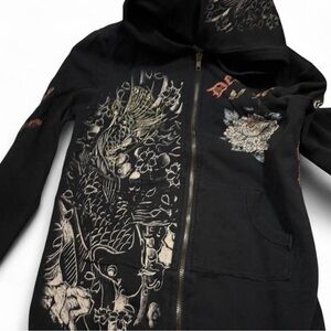 Ed Hardy “Dedicated” Skull & Roses Black zip up Hoodie with details Size: small