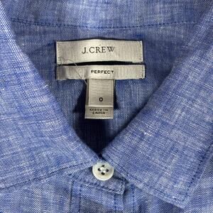 J.Crew Size 0 Perfect Solid Blue Linen Long Sleeve Button-Up Lightweight Shirt