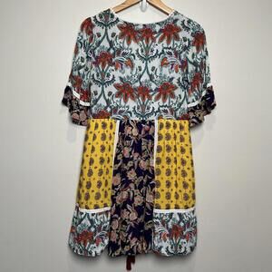 Anthropologie Lilka Dress Size XS Trapeze Multicolor Purple Yellow Patchwork