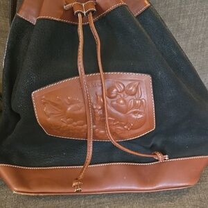 Black and Brown Leather Tote Bag with Embossed Patch