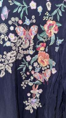- Floral and butterfly embroidery