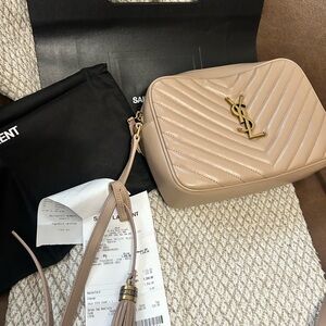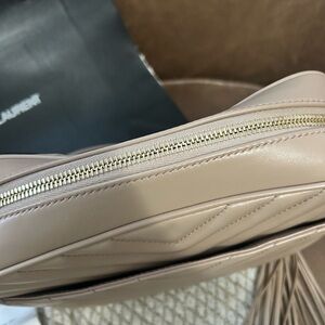 Saint Laurent Quilted Camera Bag in Beige Taupe with Gold Hardware