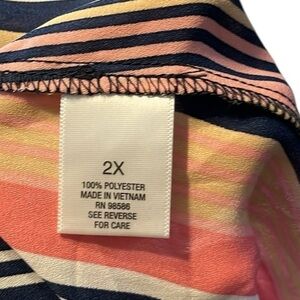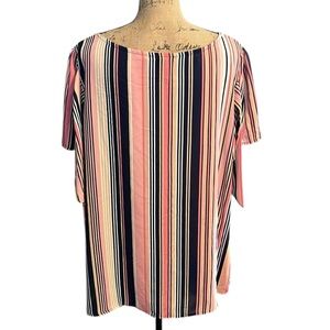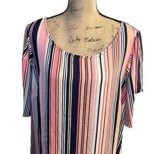 Stylish women's top featuring vibrant pink and navy stripes. Perfect for casual outings or a day at the office. Roz & Ali size 2X.