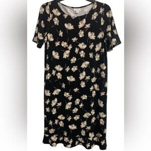 Perfect for a beach vacation, this J. Jill XS dress features a floral design in black and tan. Its midi length and casual style make it a versatile addition to your summer wardrobe.
