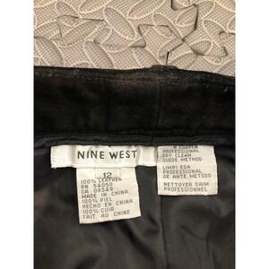 Nine West Pants Womens 12 Black Suede Leather Straight Leg High Rise Vintage