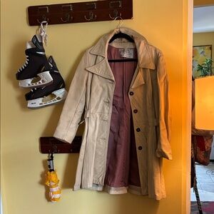 Light Beige Leather Trench Coat with Mauve Lining
