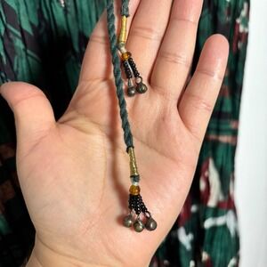 VTG Y2K Green Drawstring Tribal Cotton Broomstick Maxi Skirt Sz L Peasant Gypsy