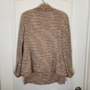 Rena Lange Tweed Skirt Suit Fringe Sequin Wool Cotton Beige Black White 10