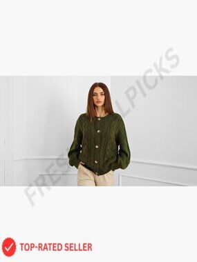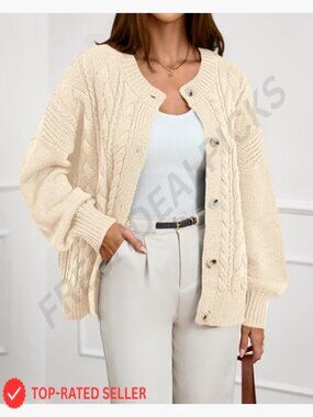Chunky Cable Knit Cardigan Oversized Loose Fit Button Front Cozy Winter Sweater