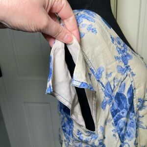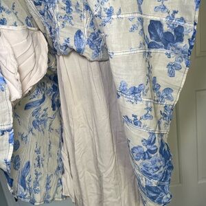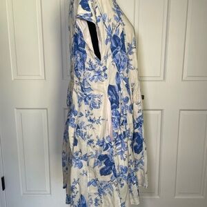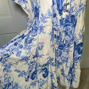 Free People Sully Floral Blue & Cream Babydoll Mini Dress Size M Romantic