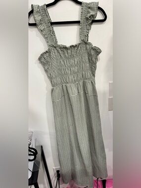 Old Navy Green Gingham Smocked Midi Dress