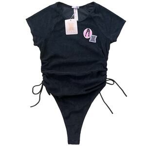 NWT Savage x Fenty Terrycloth Thong Bodysuit in Black Size Small