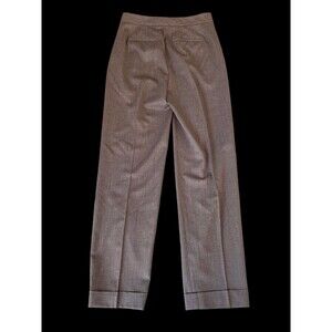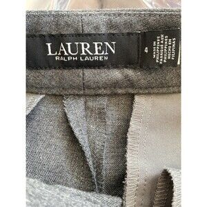 The RALPH LAUREN Black Label Wool Trousers in size 4 are formal and business attire perfect for the modern woman. Made of high-quality wool fabric with a flat front and straight leg design, these dress pants feature a zip closure and subtle accents such as buttons and zippers. The timeless gray color adds sophistication to any outfit, and the 34-inch inseam provides a comfortable and stylish fit. Handmade in the United States, these trousers showcase the prestige and quality associated with the Ralph Lauren Black Label brand, making them a versatile and essential piece for any woman's wardrobe.