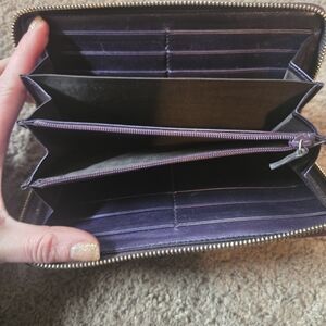 Gucci Plum Patent Leather Zip Wallet with Gold Hearts
