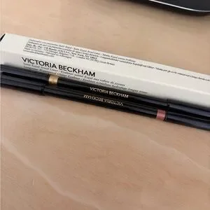 Victoria Beckham dual eyeliner in two metallic shades. Slim retractable pencil design. Smooth, luminous finish for subtle sparkle.