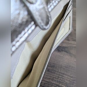Franco Sarto Metallic Silver Leather Clutch Wallet Organizer Snap Closure