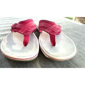 Clarks Cloudsteppers Sandals Womens 9 M Brinkley Jazz Flip Flops Fushia Slip on