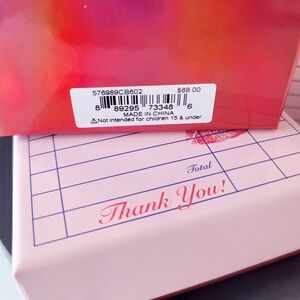 Playful chocolate covered strawberry charm in glossy red enamel. Green enamel leaf accent and crystal studs. Gold-tone heart ring and lobster clasp. Packaged in branded pink box. Perfect cute accessory for bags or keys.