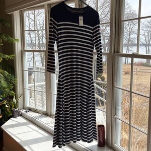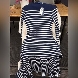 New Ralph Lauren - Large & XL Navy & White Striped Long-Sleeve Fit & Flare Dress
