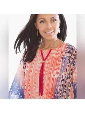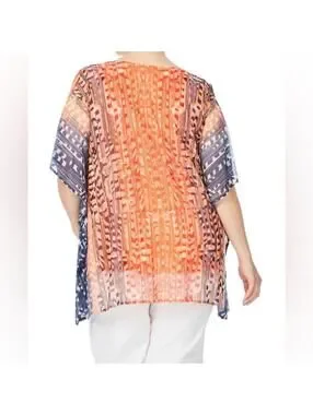 Nygard Orange Print Sheer Poncho Style Open Shoulder Blouse Top- Size Medium