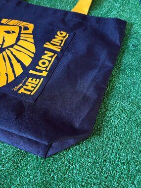 Official Disney The Lion King Broadway Musical Tote Bag in black and yellow, featuring iconic Simba design. This lightweight and reusable tote is perfect for shopping, travel, everyday use, or as a collectible for Disney and Broadway fans.