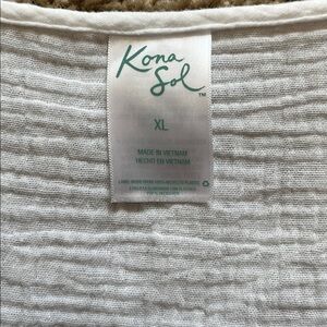 Experience effortless style with the Kona Sol White Swim Coverup, designed with a relaxed, oversized fit and short dolman sleeves. This boxy tunic is perfect for a day at the beach, offering a chic and comfortable transition from water to shore.