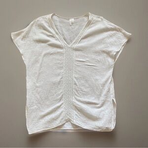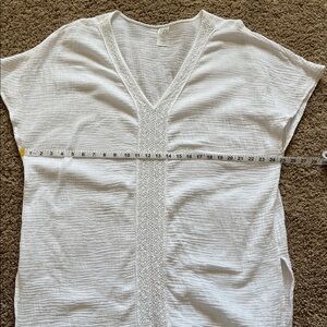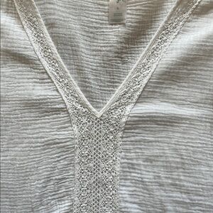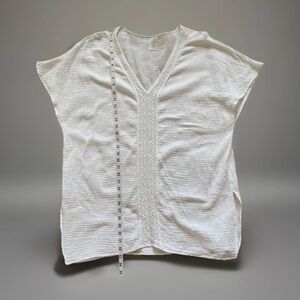 White gauze swim cover up top BoHo beachy V-neck lace trim, light weight size XL