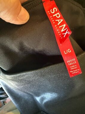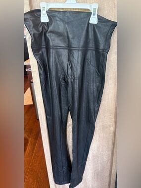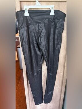 SPANX Black Shiny Faux Leather-Look Leggings Petite L/G