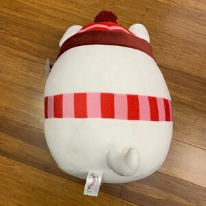 Keywords: Squishmallows, Bullseye, Target dog, plush, stuffed animal, toy, collectible, kids, gift, holiday, hat, scarf, red, white, dog plush