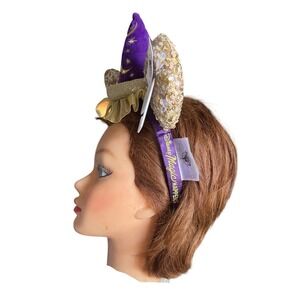 Featuring Purple and Gold Sorcerer Hat with small veil and gold sequin ears
