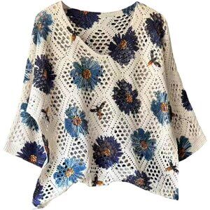 Features: Stretchy and comfortable crochet sweater with a vibrant floral pattern and delicate lace details that give it an elegant vibe. The V-neck and 3/4 sleeves make it great for layering or wearing solo.