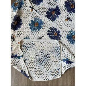 Women's Crochet Sweater Floral Boho V Neck 3/4 Sleeve Knit Top — Perfect for adding a touch of boho charm to any outfit.
