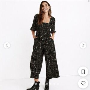 Madewell Lucie Elbow Sleeve Smocked Wide Leg Jumpsuit Stem Scatter 0 nwt